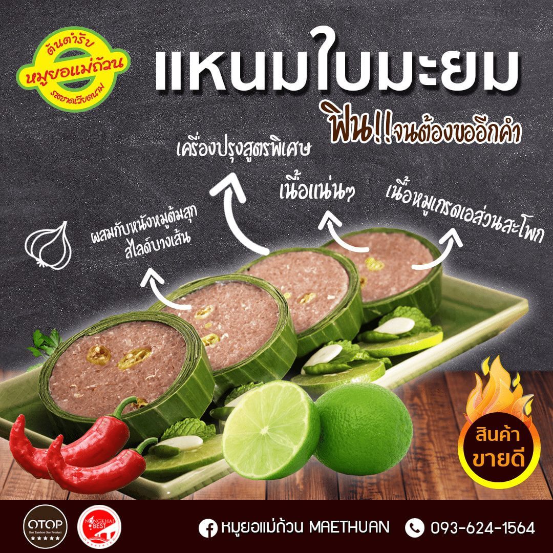 เนื้อหมูเกรดเอส่วนสะโพกที่แยกไขมันและเอ็นออกแล้ว ผสมกับหนังหมูต้มสุกสไลด์บางเส้น และเครื่องปรุงสูตรพิเศษ ห่อด้วยใบมะยมคัดพิเศษสามารถรับประทานได้อย่างลงตัวกับเนื้อแหนมส้ม ห่อด้วยใบตองสดอีกชั้นตามแบบฉบับโบราณ หลังจากแหนมส้มมีรสเปรี้ยวควรเก็บรักษาในอุณหภูมิตู้เย็น 3-6 องศา จะทำให้แหนมส้มมีรสชาติคงที่และเนื้อแน่นขึ้น